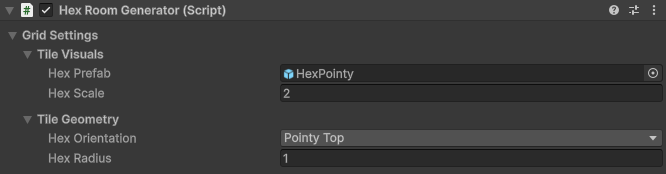 Add HexRoomGenerator.cs to any GameObject.